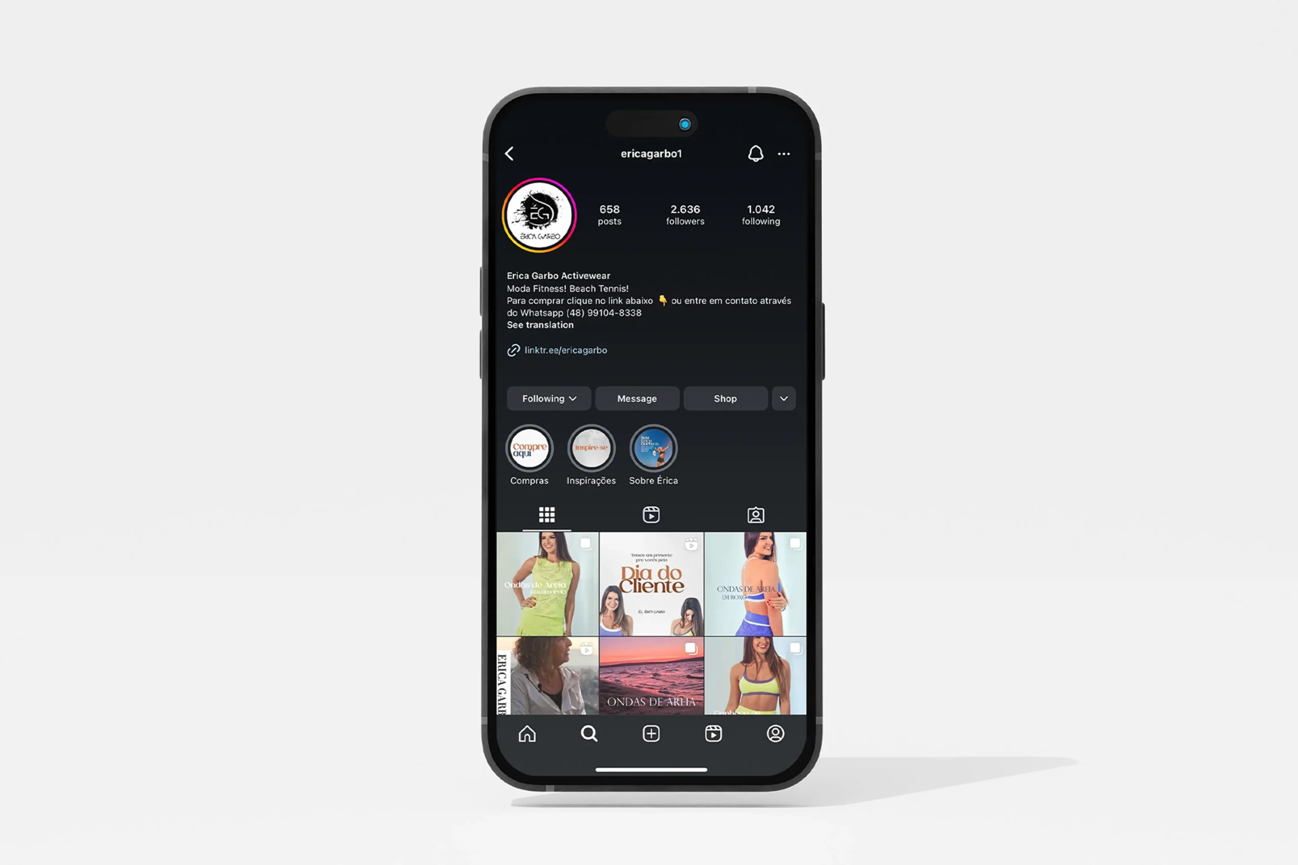 Para isso, mais do que montar um cronograma de conteúdos, estudamos a empresa e o público-alvo para fazer posts atraentes, relevantes e que realmente causem impacto nos seguidores do perfil Érica Garbo. O resultado tem sido extremamente positivo, já que todas as redes sociais da marca estão com um visual mais harmônico, fotos que dão destaque às peças, designs clean e elegantes e calls to action que estimulam a compra.